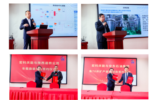 公司總工程師程逵煒先生與公司副總經(jīng)理趙東升先生分別就公司新產(chǎn)品進(jìn)行介紹,涉及到的新產(chǎn)品:車載天然氣液化設(shè)備、原油聯(lián)合站VOCs回收、天然氣處理廠尾氣處理、動物殘體處理&醫(yī)療廢物處理。特別值得一提的是,在會議現(xiàn)場,公司總經(jīng)理鄒鑫先生與陜西道橋建設(shè)公司簽訂了車載撬裝液化項(xiàng)目合作合同、與安東石油公司簽署角70井?dāng)U產(chǎn)裝置項(xiàng)目合作合同、與武漢科前生物公司簽訂動物殘體處理設(shè)備項(xiàng)目合作合同;與冰輪環(huán)境集團(tuán)、無錫眾博深冷工程有限公司簽署戰(zhàn)略合作框架協(xié)議,向中科院理化技術(shù)研究所所友會進(jìn)行捐贈儀式。這些合作將進(jìn)一步鞏固宏科慶能在行業(yè)內(nèi)的領(lǐng)先地位!