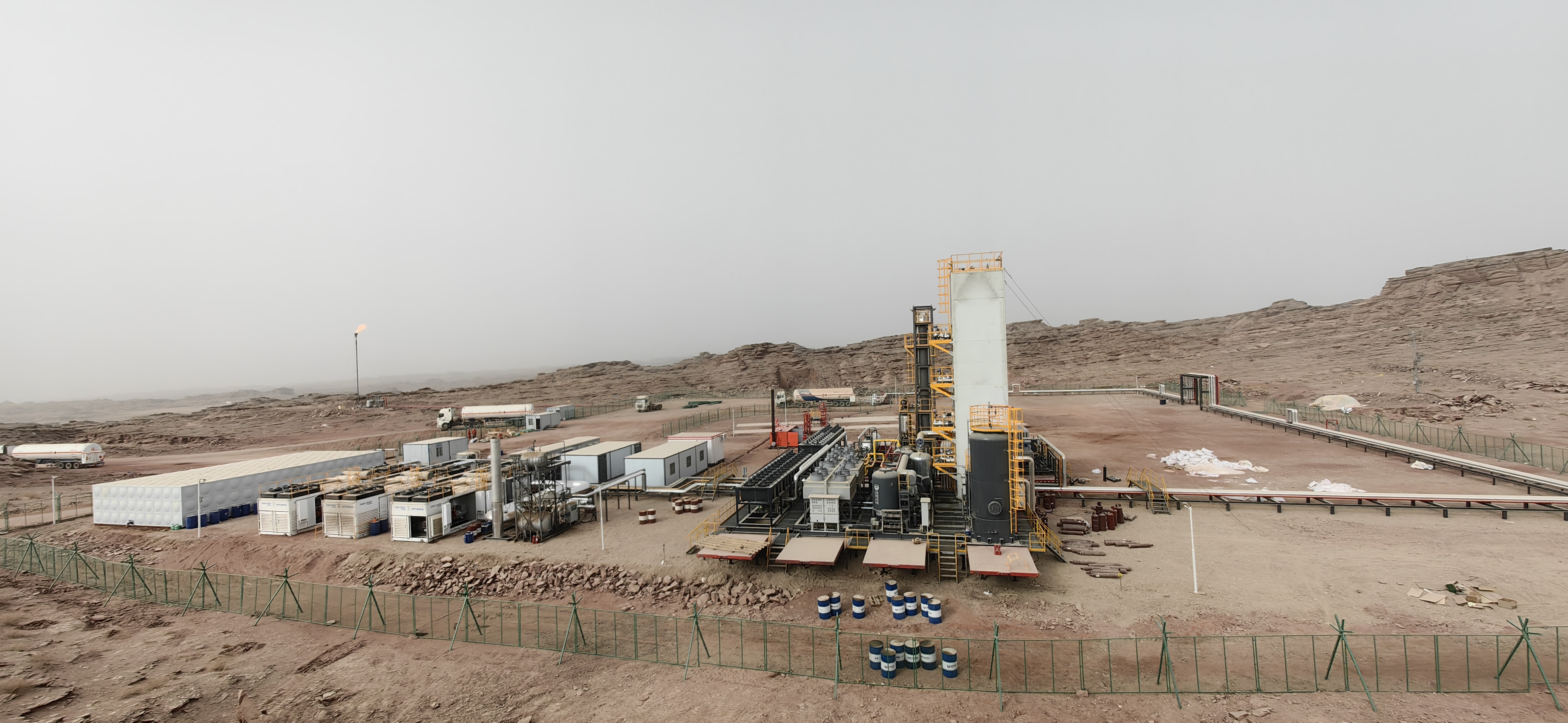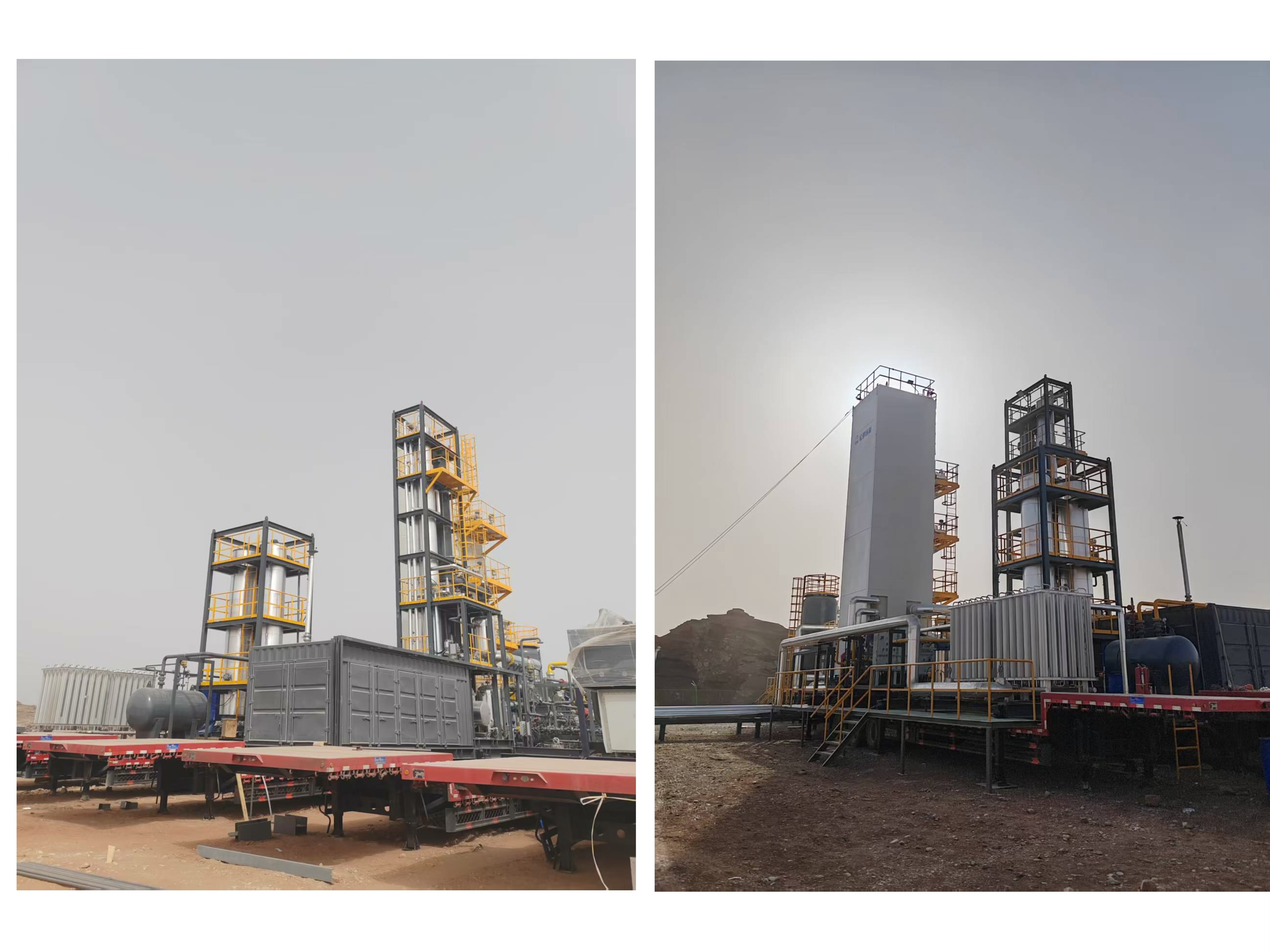 此項(xiàng)目位于新疆維吾爾自治區(qū)阿克蘇地區(qū),以高含氮井口氣為原料(氮?dú)夂匡@著高于常規(guī)氣源),通過(guò)定制化預(yù)處理與高效液化工藝,成功將日處理能力提升至10萬(wàn)標(biāo)方以上。該項(xiàng)目采用模塊化、車載撬裝式設(shè)計(jì),LNG產(chǎn)品純度與產(chǎn)量均達(dá)到設(shè)計(jì)指標(biāo),裝置具備快速部署、靈活遷移、高效生產(chǎn)等優(yōu)勢(shì),為非常規(guī)天然氣資源開(kāi)發(fā)提供了創(chuàng)新解決方案。目前裝置連續(xù)穩(wěn)定運(yùn)行,正式投入生產(chǎn)運(yùn)行。