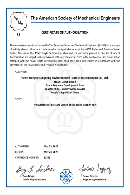 ASME認證是全球壓力容器設備領域的最高標準之一,被廣泛認可為產(chǎn)品質(zhì)量與安全性的權(quán)威保障。該認證體系嚴格審查企業(yè)的設計能力、制造工藝、質(zhì)量控制及管理體系,獲得認證的企業(yè)可在產(chǎn)品上加蓋“ASME U鋼印”,從而獲得國際市場的準入資格。