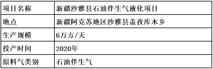 2020年 新疆沙雅縣石油伴生氣液化項(xiàng)目 6萬(wàn)方/天