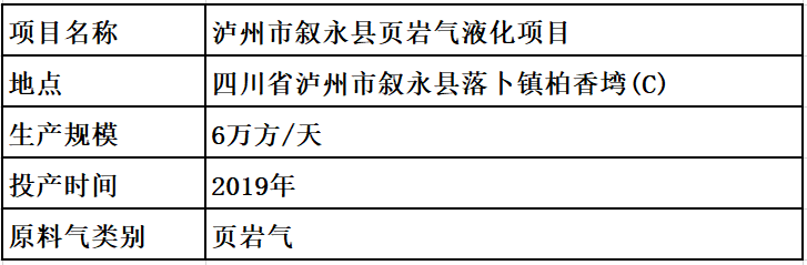 2019年 四川敘永縣頁(yè)巖氣液化項(xiàng)目 6萬(wàn)方/天