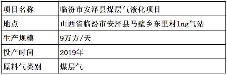 2019年 山西安澤縣煤層氣液化項(xiàng)目 9萬(wàn)方/天