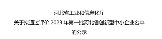 喜報(bào)!熱烈祝賀我司獲評“河北省創(chuàng)新型中小企業(yè)”稱號